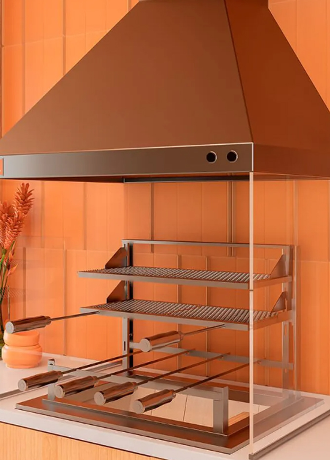 Produto de alto padrão projetado para elevar sua experiência com o churrasco. Com design elegante e funcional, atende as necessidades e transforma a beleza da sua área de lazer. Composição: Qnt Produto Medidas 1 Coifa em aço inox 304 80x60x50cm 1 Duto em aço inox 304 9'' - 120cm 1 Capa aço inox 304 28x28x120cm 1 Chapéu chinês em aço inox 304 9'' 1 Braseiro blindado inox 50x40cm 2 Vidros laterais temperados 58x60cm 1 Grill elétrico + 4 espetos Inox 304 54x38-50x29cm